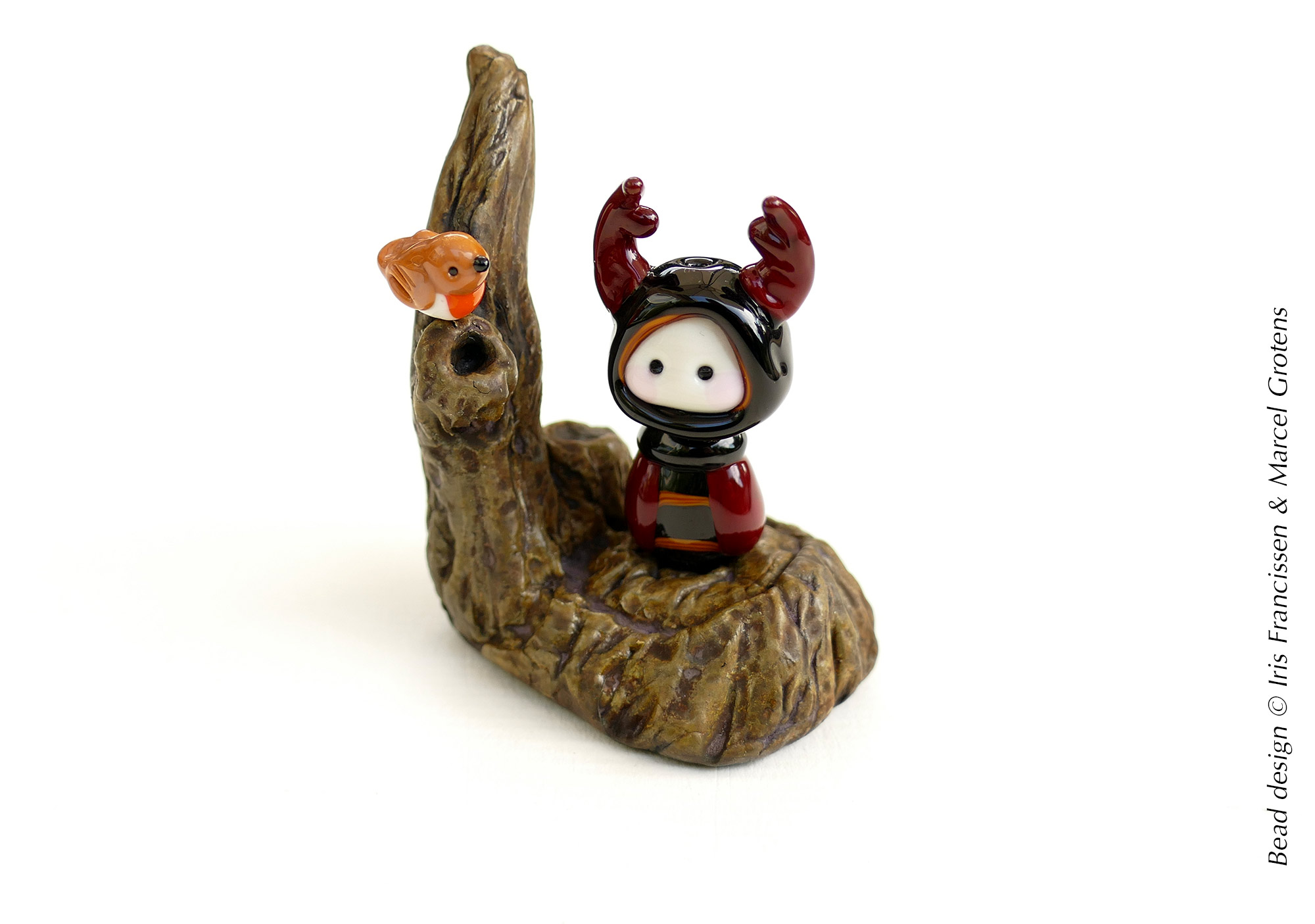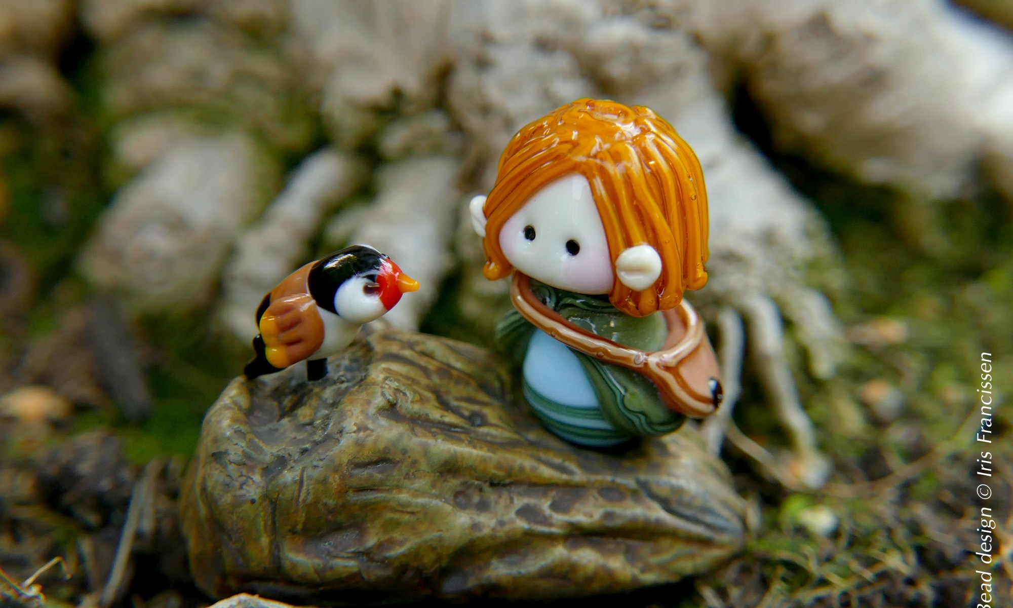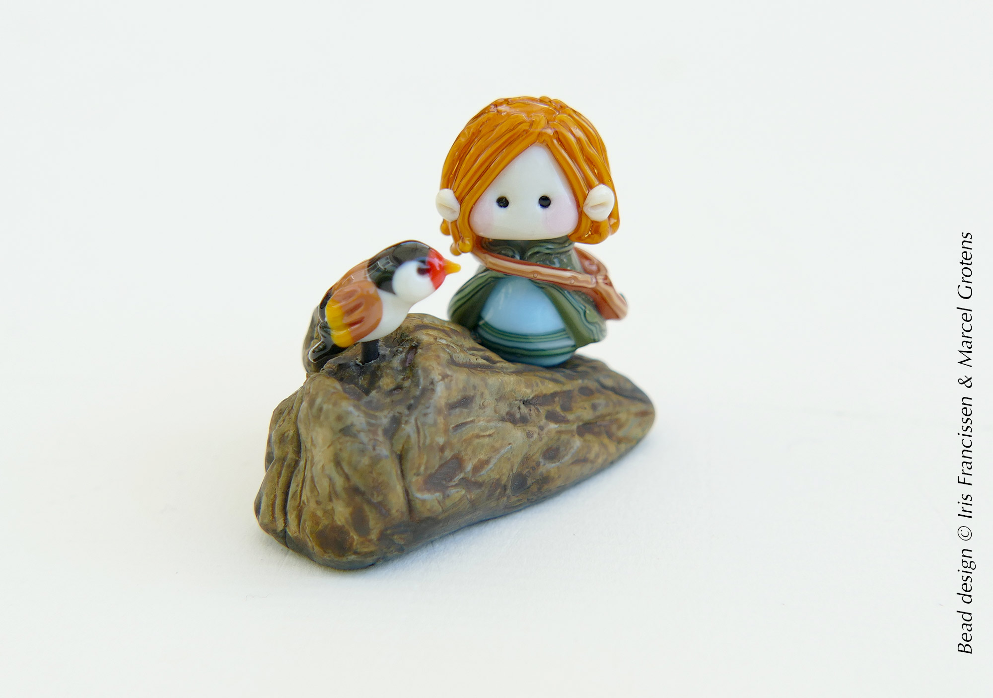 Last week we gave some available designs in our Etsy shop a little display base with a glass bird included. The Little Stag Beetle Guardian has a base with a Robin now. The Travelling Elf shares his base with a Goldfinch. Else than that not much new designs this week. We had to work through a list of custom orders and it was a little to warm in the studio for we are having a heatwave in the Netherlands right now.