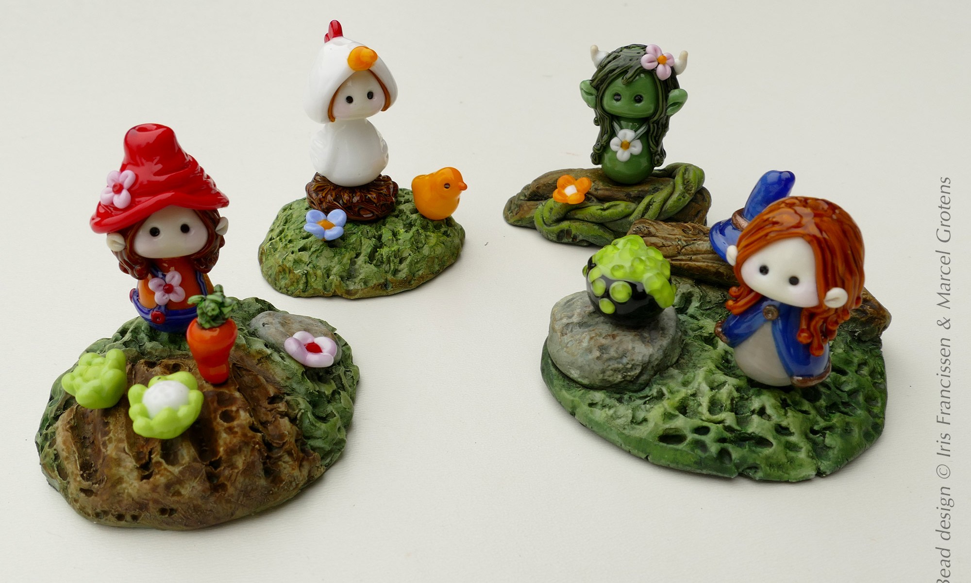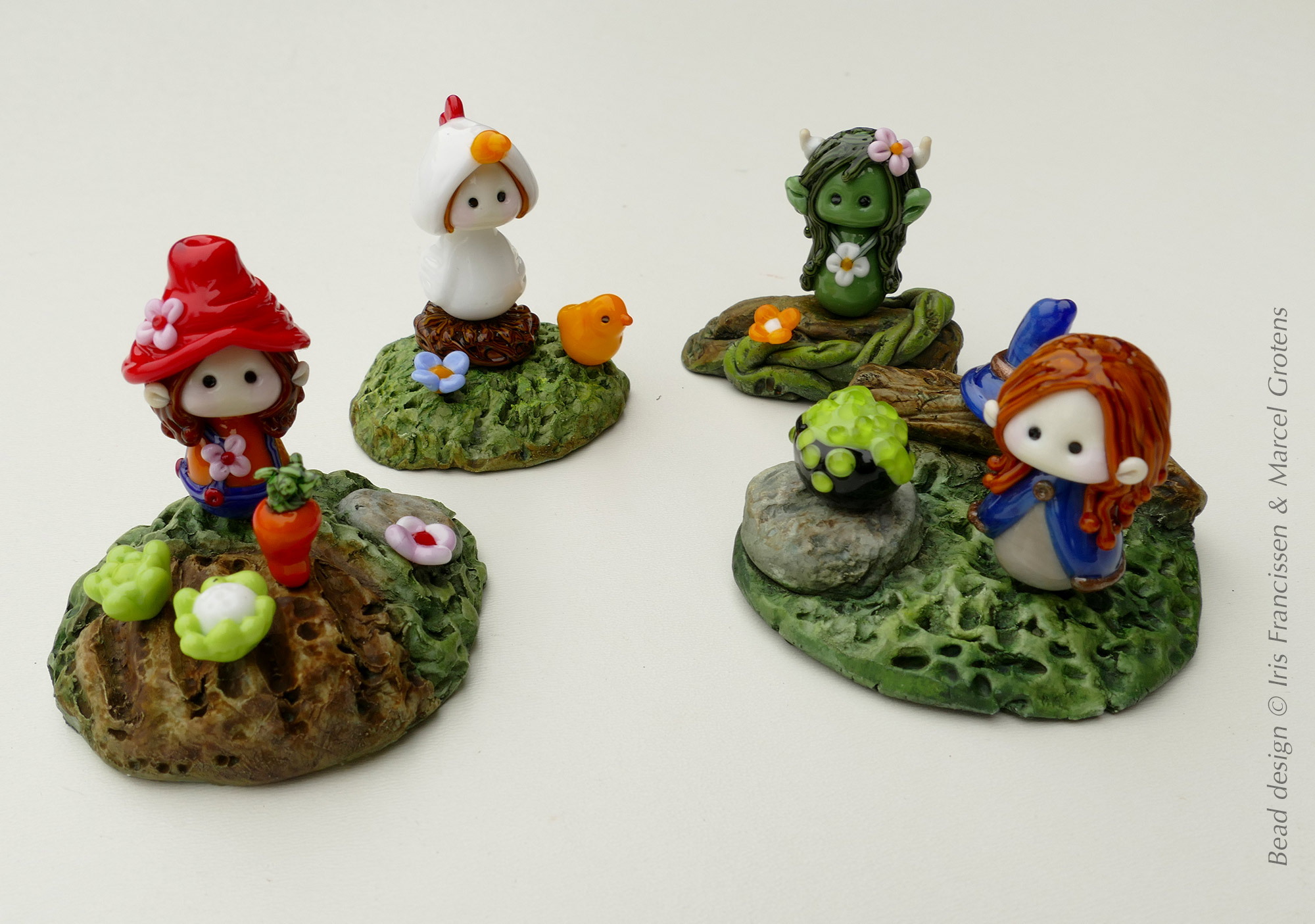 This evening (Central European Time) we will list a new series in our Etsy shop. We also made four little special sets of glass figurines on epoxy clay display bases. The major Figurine is a glass bead that can be removed from the base to wear as a pendant for instance.