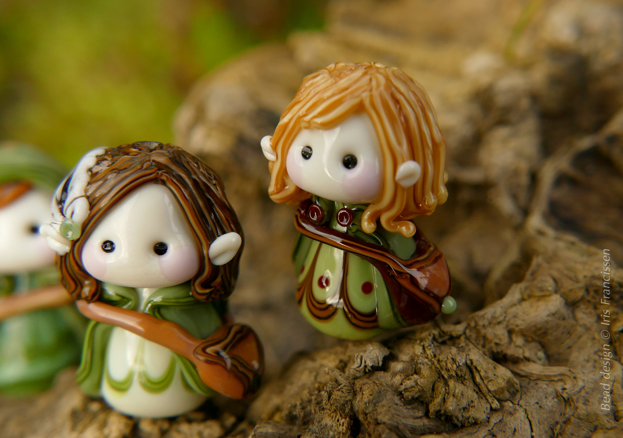 We’ve been working on some new designs and idea’s. Here is a little preview including a Japanese Elf bead set with beads in the style of the glass bead Elf. Also a Barn Owl pendant and some Forest Elves, made for a big special set that is having a big tree, stacked stone wall, a Barn Owl and the three shown Elves included.