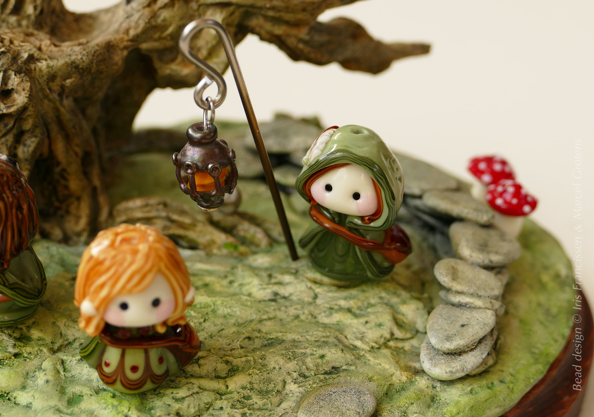This week we finished two special glass bead sets. The first “Encounter with Hedgehogs”, will be featured in our Etsy shop coming weekend. The second “A Resting Place for the Night” is the largest glass bead set we made untill now and is an exclusive set. It contains the following glasswork: three Woodland Elves, a Barn Owl, a Badger, two mice, a lantern and two Fy Agaric Mushrooms.