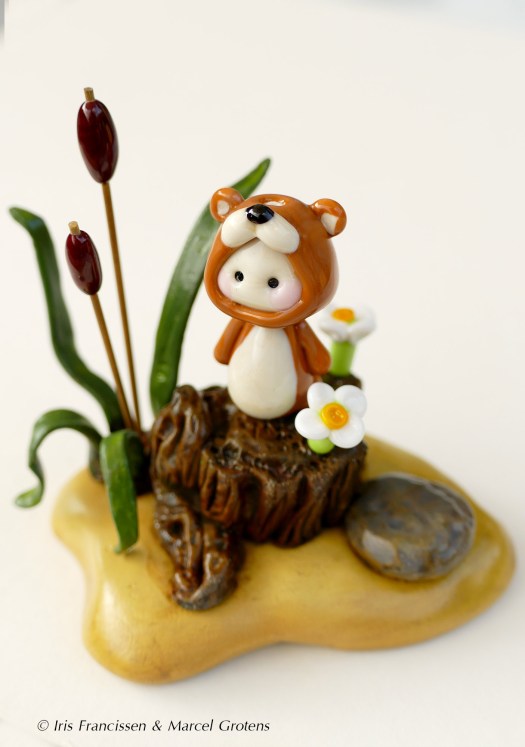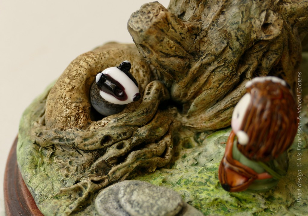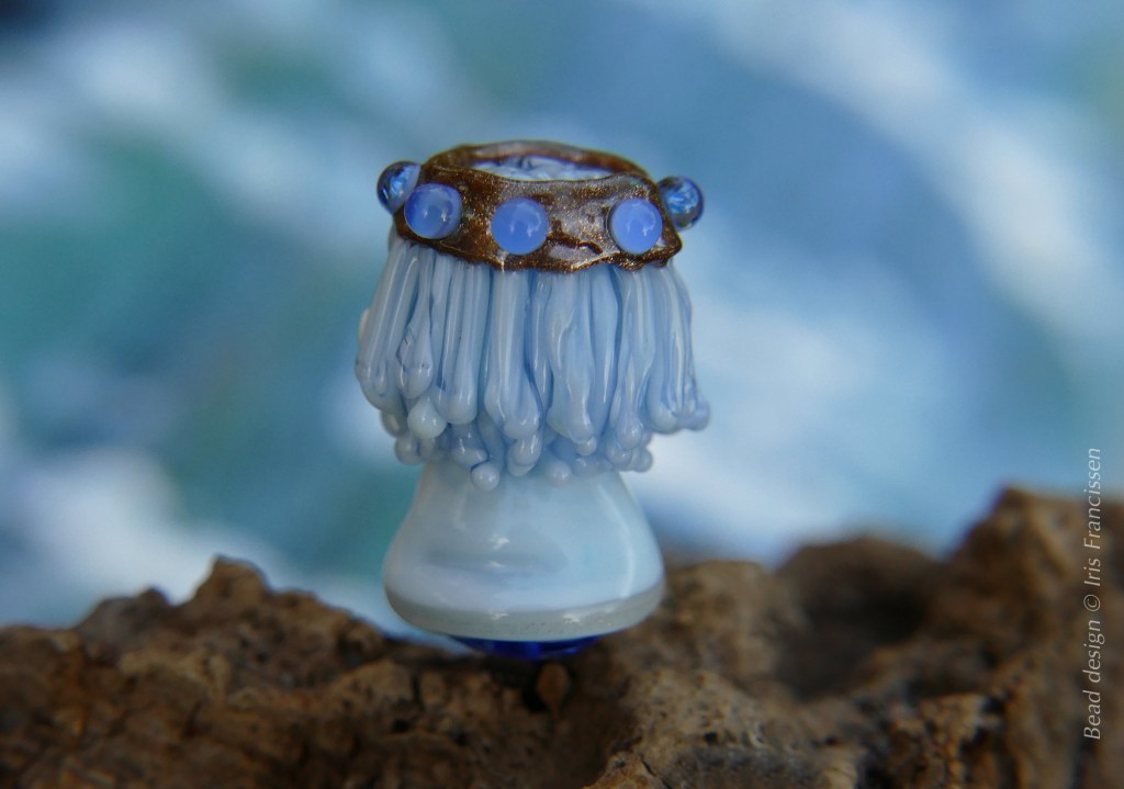 In 2019 we started on a book to showcase the lampwork art Iris makes. That book is delayed sadly, for we have been busy doing other things, but we are still working on it. For this book we wanted some special glass work an decors. And trying some ideas got me using background decor more often for our weekly series of glass beads also. Mostly very simple. Not like the larger decors for the book.