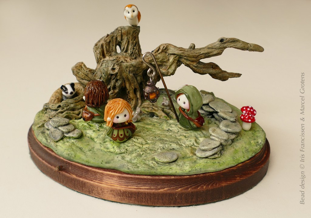 Around 2009 Iris started making Glass Bead Fairies. From early on we thought the best way to show them to viewers and customers on our websites was to capture them in a natural or mystical setting. We often went to a forest nearby to photograph the Elves and Fairies.