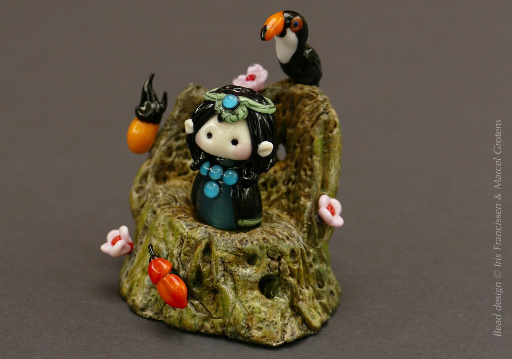 By 2018 we introduced also small decors in the form of special glass bead displays. Now, if customers did not use the glass beads to wear, they could display them. These displays often contain additional glass work like tiny detailed birds. We like them to ‘tell’ little stories.
